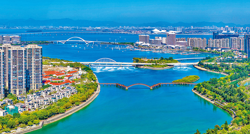 2002年6月,时任福建省委副书记、省长的习在厦门调研时提出“提升本岛、跨岛发展”的重大战略。厦门深入贯彻这一战略,持续推进五缘湾片区生态修复与综合开发,该片区已发展成为以现代服务业为主导的城市新区。图为2024年12月12日拍摄的五缘湾。 厦门日报供图