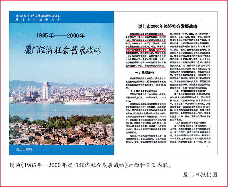 《发展战略》前瞻部署了必须持续推进的远期设计。这一战略规划不仅系统制定了厦门1985—2000年的经济民生发展指标和重点,还前瞻性地对科技创新、改革开放、生态保护、教育人才等多方面进行系统部署,其中很多具体工作的科学判断和远期设计,直到现在仍然十分契合厦门的发展实际和未来现代化建设目标。比如,《发展战略》提出实施自由港某些政策,明确采用渐进式方针、分“三步走”,把厦门建设为“自由港型的经济特区”。在这一先进构想指引下,厦门持续探索实践,实现了从出口加工区、保税区、区港联动、保税港区,到自贸试验区的迭代升级。再比如,《发展战略》在全国率先提出“生态位”概念,强调树立经济建设必须与环境保护建设协调发展的观点。在这一科学理念引领下,厦门坚持生态立市,探索出一条协同推进高质量发展和高水平保护的生态文明建设路径。这反映出,在改革开放初期,习就对中国式现代化的一系列重大课题进行了深刻思考,《发展战略》的编制和实施过程也折射了习关于中国式现代化道路的探索、思考和实践过程。我们要坚持不懈、久久为功贯彻落实《发展战略》远期设计,在解决一个个问题中实现既定战略目标,奋力把习为厦门擘画的宏伟蓝图变为美好现实。