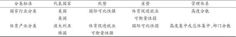 以美国和英国为代表,这些国家采用国际通用性较强的“国家行业分类”标准(如北美行业分类体系)进行体育就业统计与测算,其优势在于数据在国际范围内的可比性强,能够为跨国比较提供统一标准,局限性在于忽视了体育产业的系统性及其内部多样性,将体育相关职业分散在多个行业中,不利于全面评估体育产业发展对就业的贡献。欧盟、韩国和澳大利亚等国家和地区采用独立的“体育产业分类”标准进行统计与测算,其优势在于能够更全面地反映体育产业发展对就业的拉动作用,涵盖体育竞赛、体育教育、体育用品制造等多个业态,能够结合定性和定量分析清晰地展示体育产业内部各业态的就业情况,为政策制定提供更精准的数据支持。但是,辩证地看,其劣势也比较明显,即数据在国际范围内的可比性较弱。