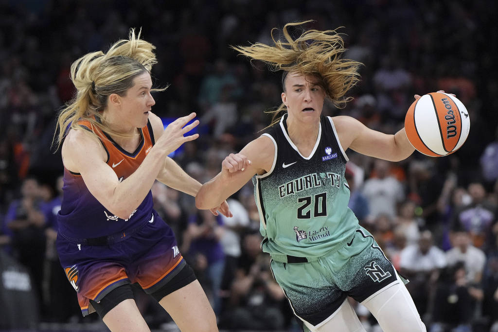 当地时间2025年9月19日,美国菲尼克斯,WNBA季后赛首轮第三场,纽约自由人队球员萨布丽娜·约内斯库(20号)在对阵菲尼克斯水星队的比赛下半场。视觉中国 图